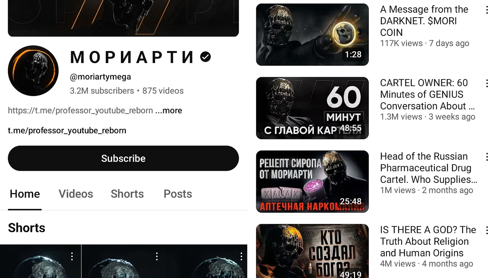 У YouTube канала MoriartyMega (М О Р И А Р Т И) более 3 млн подписчиков, а всего размещено 875 видео.