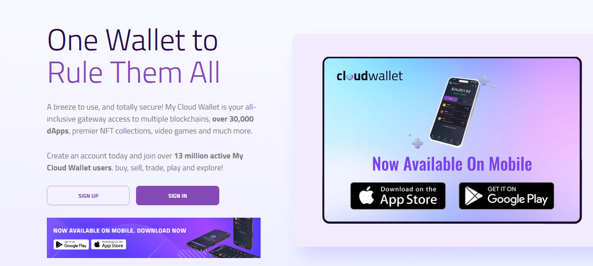 На сайте mycloudwallet com можно подписаться на новости о криптокошельке или перейти на страницы официальных магазинов. Но подробной информации о приложении нет.