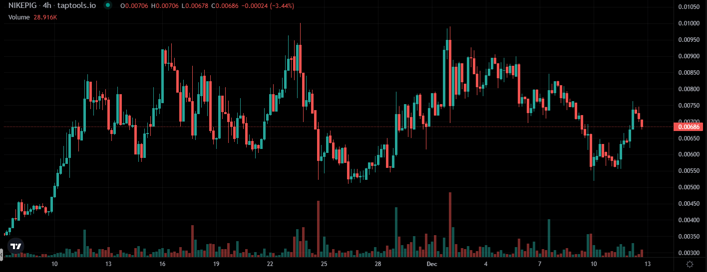 Особых новостей, как уже было сказано, по своим каналам коммуникации распространять не приходится. Самое резонансное, что случалось с мем коином Nike случилось в июне 2024-го года, когда он вышел. Некоторых, в том числе Чарльз Хоскинсон, удивило то, что проект начал существовать и за короткое время, 12-ть часов, стала стоить практически один миллион долларов. Это бросило вызов на тот момент самой популярной в экосистеме Cardano валюте SNEK. Сейчас курс Nike коин составляет $0,00685.