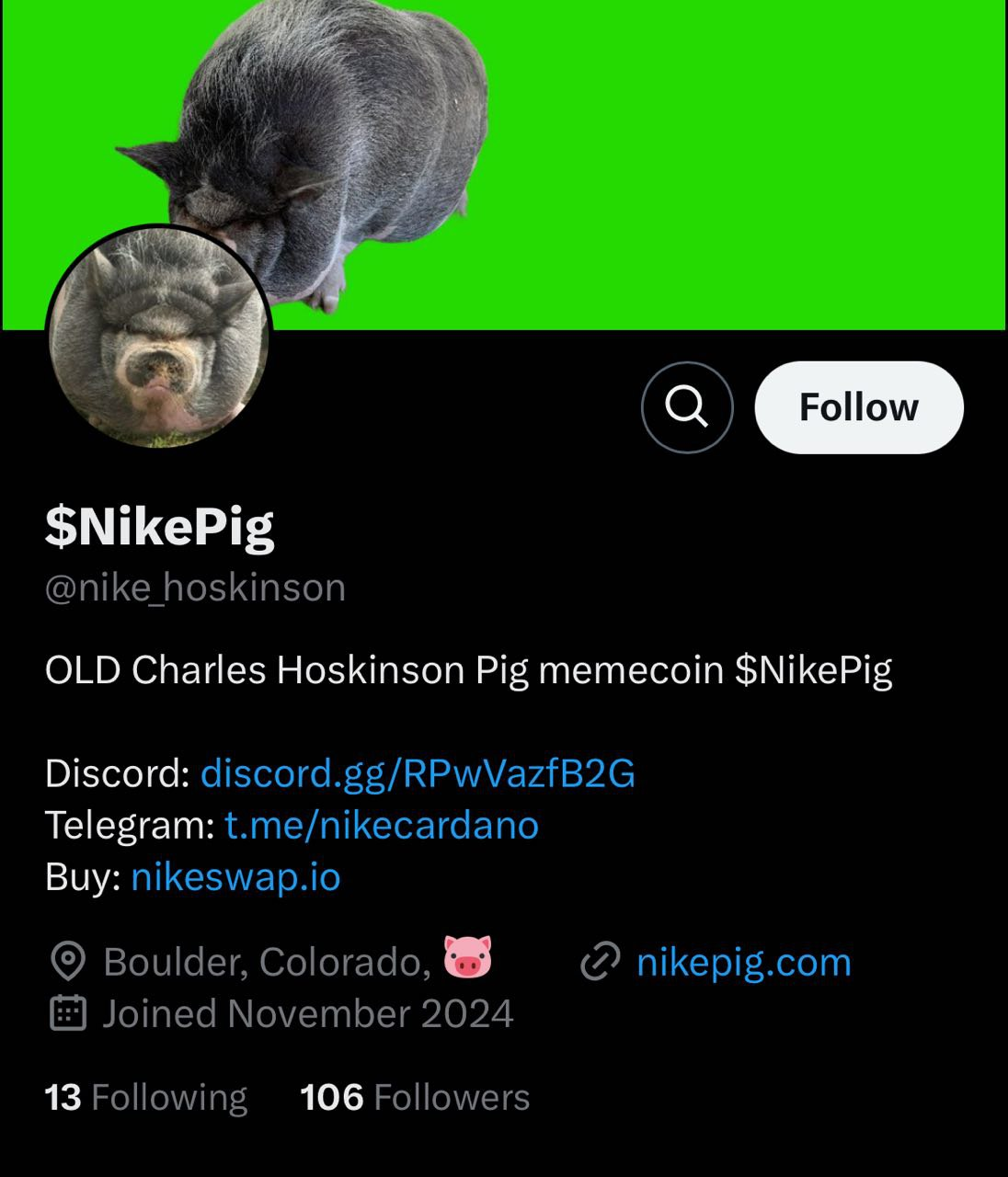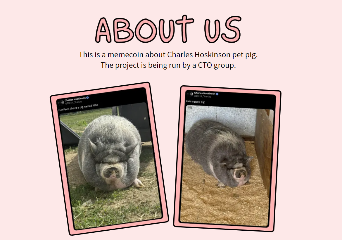 Маскотом нового токена стала не известный по всему миру бренд кроссовок, как можно было бы подумать, а всего лишь милая свинка по кличке Найк. Животное приобрело популярность тогда, когда ее хозяин, Чарльз Хоскинсон, создатель блокчейн-платформы Cardano, выложил совместное фото со своим любимцем в социальной сети X, бывшем Twitter. Кто-то может догадаться, что блокчейн, на котором работает указанная криптовалюта «Найк» также Cardano.