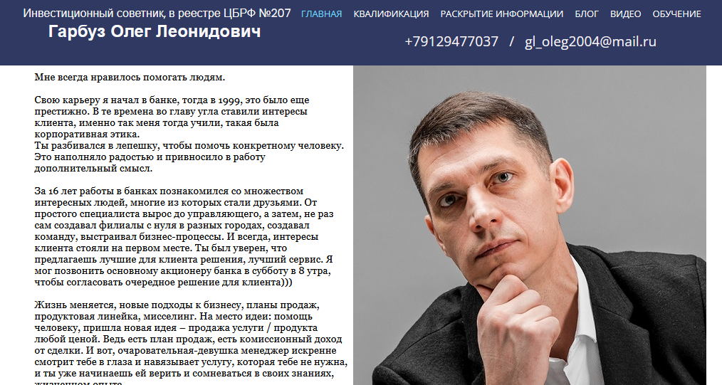 Олег Гарбуз занимается финансовой деятельностью, принимает участие в работе Школы Московской биржи.