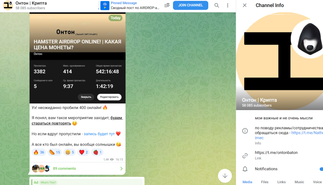Онтон Крипта — это название Телеграмм и YouTube канала с советами о том, как зарабатывать токены. Автор демонстрирует игры и другие проекты, за которые можно получать монеты, а также информирует про аирдропы токенов. Далее мы расскажем детальнее о проекте и можно ли доверять его создателю.