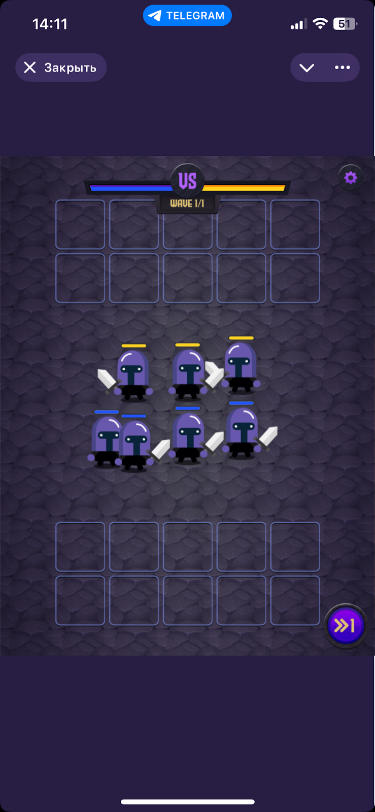 Когда все герои будут выставлены, начнется потасовка. Чтобы ускорить ход битвы, можно кликнуть по круглой кнопке, которая находится в правом нижнем углу экрана.