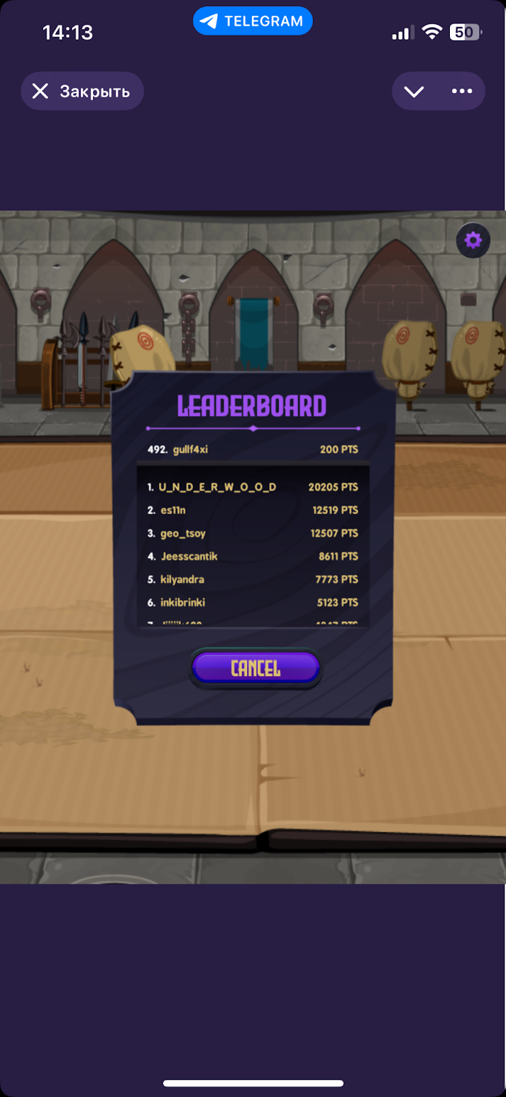 В мини-приложении присутствует таблица лидеров, которая находится в разделе Leaderboard. В ней можно посмотреть свои результаты и сравнить их с достижениями других пользователей.