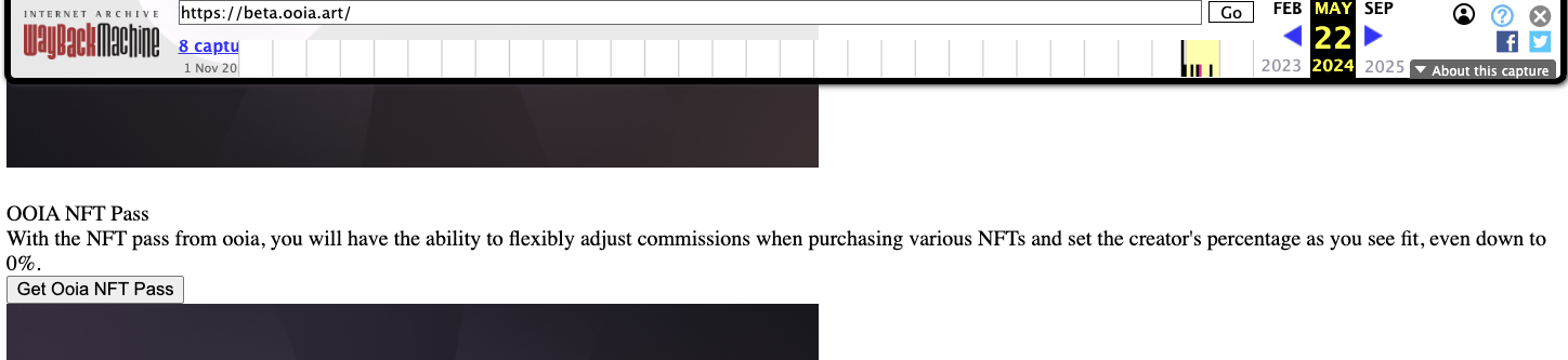 Чтобы узнать, когда НФТ-платформа начала работу, мы запросили снимки сайта ooia art из сервиса WayBackMachine. Выяснили, что первый снэпшот ресурса был сделан в мае 2024-го года.