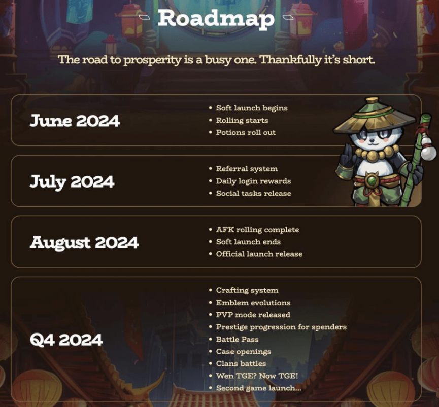 У проекта Pandaroll есть маршрутная карта, в которой указано, когда листинг «Панда ролл». Создатели и команда разработчиков утверждают, что в августе 2024 должен был состоятся выпуск токена на площадки, однако никакого коина на бирже — нет.