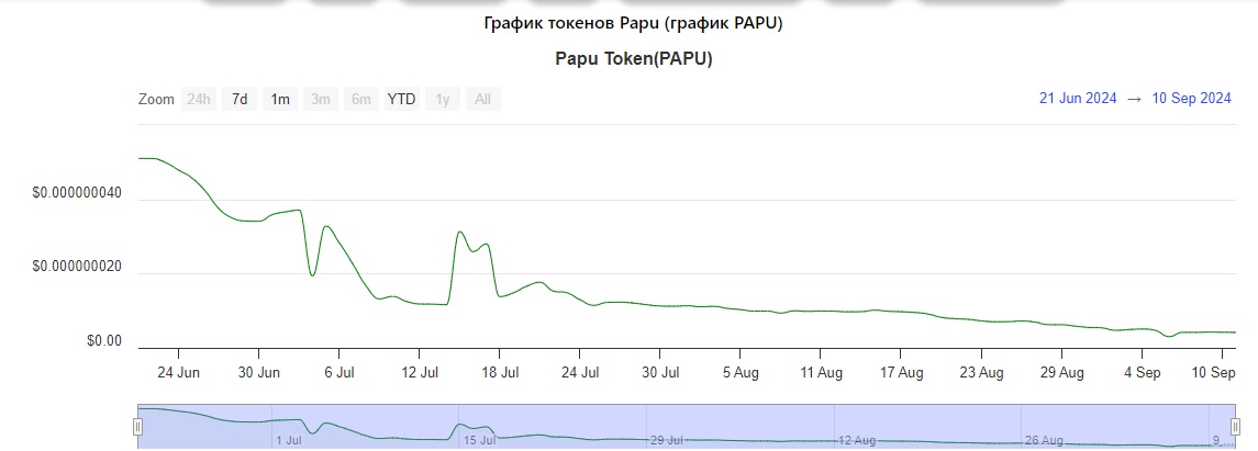 - исторический минимум зафиксирован 5 сентября 2024 года 0,000000003012 $;