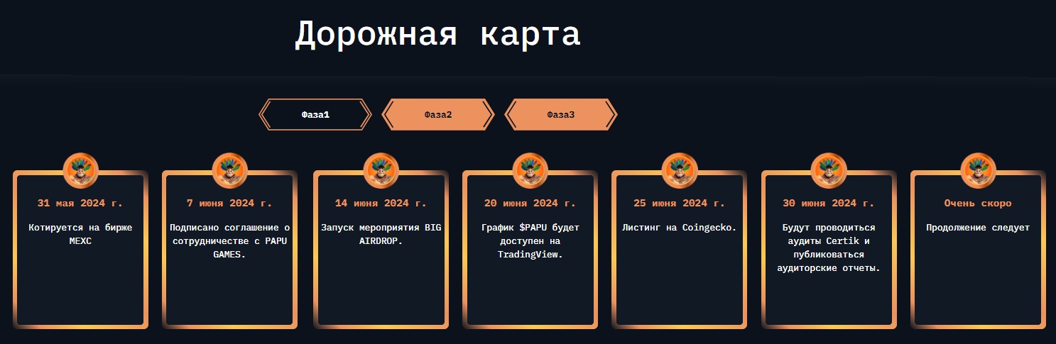 Мем-токен Papu (PAPU) пока находится на старте. Владельцы пытаются строить свою экосистему и продвигать монету, но даже не потрудились заполнить Дорожную карту, чтобы участники сообщества были в курсе предстоящих планов. Учитывая низкую стоимость и минимальный спрос, на этом этапе, у монеты очень низкие шансы пробиться на топовые позиции и вырасти в цене. Здесь многое зависит от игры, которую анонсируют разработчики и от того, какие финансы они готовы “влить” в проект.