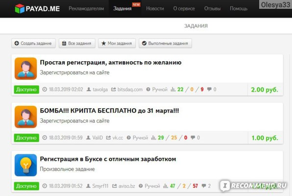 В некоторых отзывах о проекте Payad Me пользователи прикладывали скриншоты площадки. Так мы увидели пример заданий, которые можно было выполнять. В основном, участникам предлагали где-то регистрироваться и смотреть рекламу.