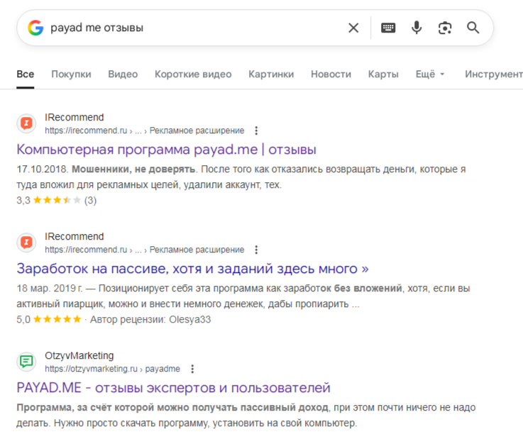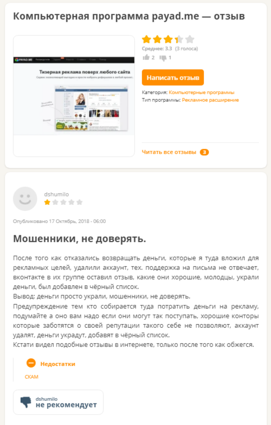 В интернете проекте информации практически никакой нет, что показывает его невостребованность. Отзывов в адрес ресурса Payad Me тоже оказалось немного, и они довольно нейтральные, хотя есть и обвинения в мошенничестве. Подробнее об этом мы расскажем позже.