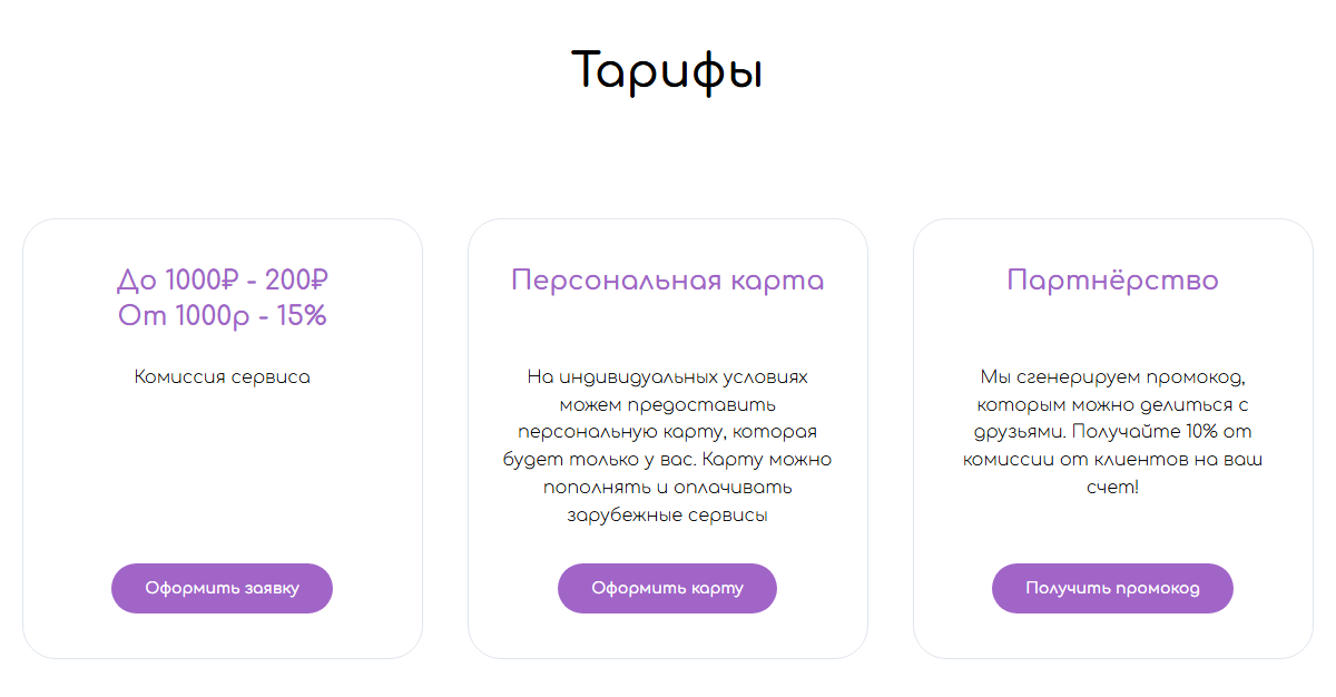 Тарифы и комиссии