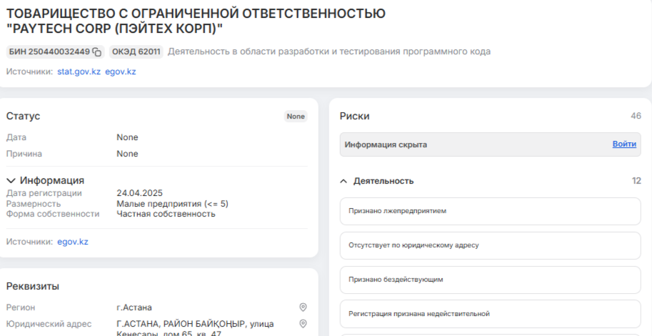 - Компания PayTool имеет официальный юридический статус в Казахстане, что лишь отчасти указывает на ее надежность – зарегистрированная деятельность отличается от фактической.