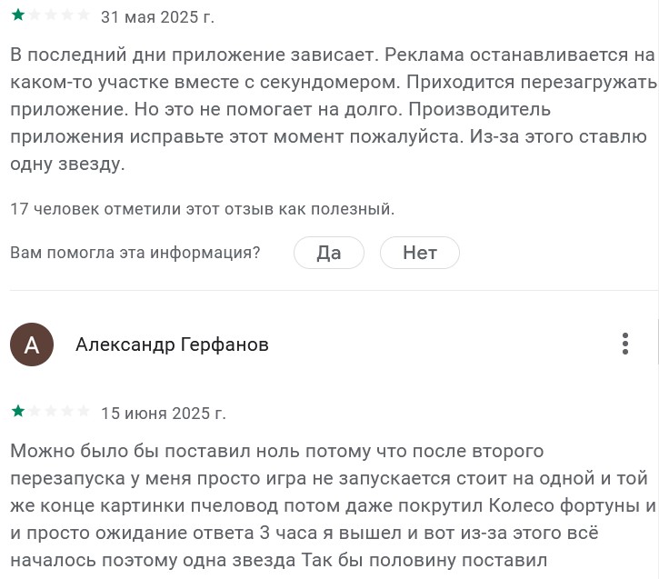 На странице приложения в Google Play много отзывов об игре Пчеловод — Заработок денег, почти все они негативные. Игроки жалуются на мизерную доходность и жадность разработчиков проекта.