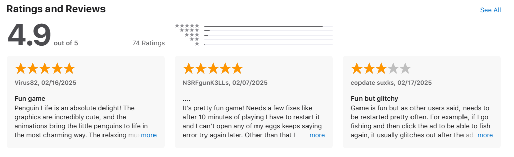 Об игре говорят не так много, количество загрузок минимальное. Если посмотреть отзывы в App Store, то в целом игра получила положительные отклики. В основном оценивают именно саму игру, а не возможность заработка. Пользователи указывают, что это увлекательная и интересная игра. Но не обошлось и без комментариев о том, что возникают проблемы – лаги и вылеты.