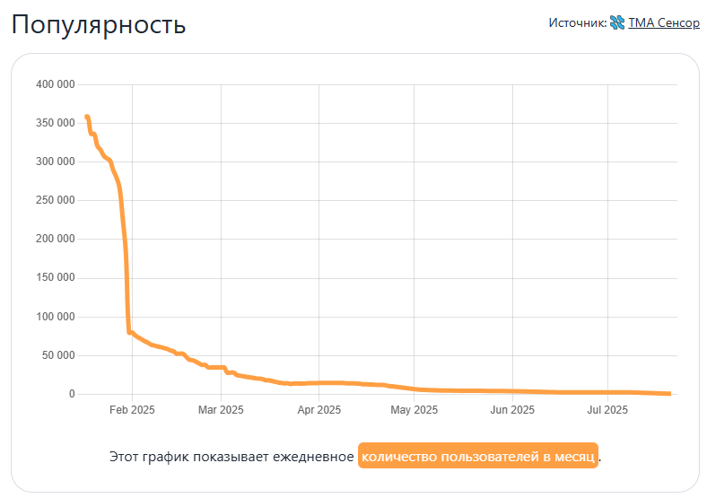 В пиковый период играло больше 350 тысяч человек ежедневно. Цифры впечатляющие для проекта в Телеграме. Разработчики активно продвигали игру через влиятельные каналы. Обещали революцию в мире мини-игр.