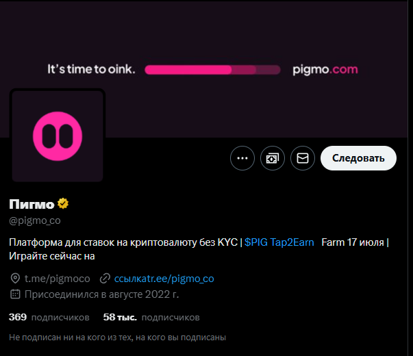 Канал проекта в X насчитывает 58 тысяч подписчиков. Посты набирают 3–4 тысячи просмотров в среднем. Активность есть, комментарии пишут, репосты делают. Но цифры далеки от пиковых показателей. Поддержка через KryptonPigmo. Отвечают за пару часов.