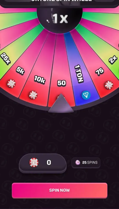 Призовой фонд колеса включает суммы от 50 монет до 1 TON крипты. Есть сектора с 5K, 10K, 75 монетами. Джекпот в виде 1 TON привлекает особое внимание игроков. Психология азарта работает на полную.