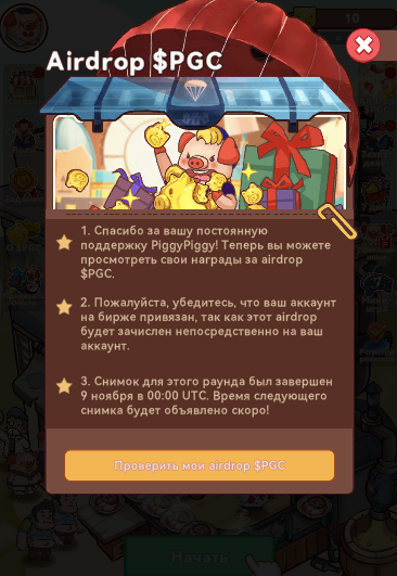 AirDrop Piggy Piggy уже свершился. Это произошло 9 ноября 2024-го года. Активные игроки, которые фармили монетки в приложении до указанной даты, могут посмотреть свой АирДроп «Пиги Пиги» в разделе с аналогичным названием.
