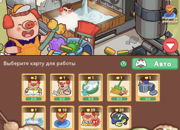 Принцип того, как играть в Piggy Piggy, сводится к выбору карты. Чтобы приступить к заработку денег, нужно нажать на кнопку «Начать» и в появившемся списке указать карточку. Также можно кликнуть по кнопке «Авто», после чего система подберет оптимальную карту.