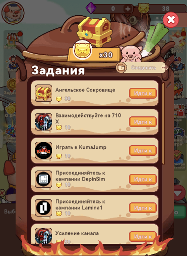 В telegram-игре Piggy Piggy есть система заданий. Список задач присутствует в разделе «Задания». За выполнение этих тасков можно мгновенно получить от 10 золотых свинок.