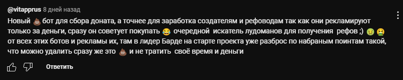На Ютубе под обзорами люди относятся более скептически. Вот самый красноречивый комментарий.