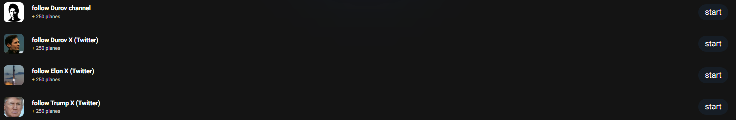 Тапалка Plane выглядит очень странно. Особенно страница с прочими заданиями. Подписаться на Дурова, Маска и Трампа в Твиттере.