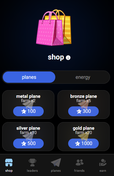 Многие пользователи не понимают, как играть в Planes. Геймплей характерен для тапалок второго поколения. Есть внутренняя валюта, которую нужно добывать несколько раз в день. В случае planes это самолетики в Телеграмме.