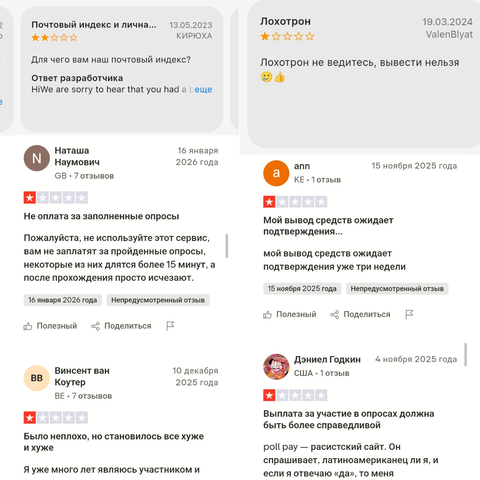 Однако большая часть отзывов о Poll Pay негативная. По словам юзеров, награды за опросы не начисляются, и вывести средства невозможно.