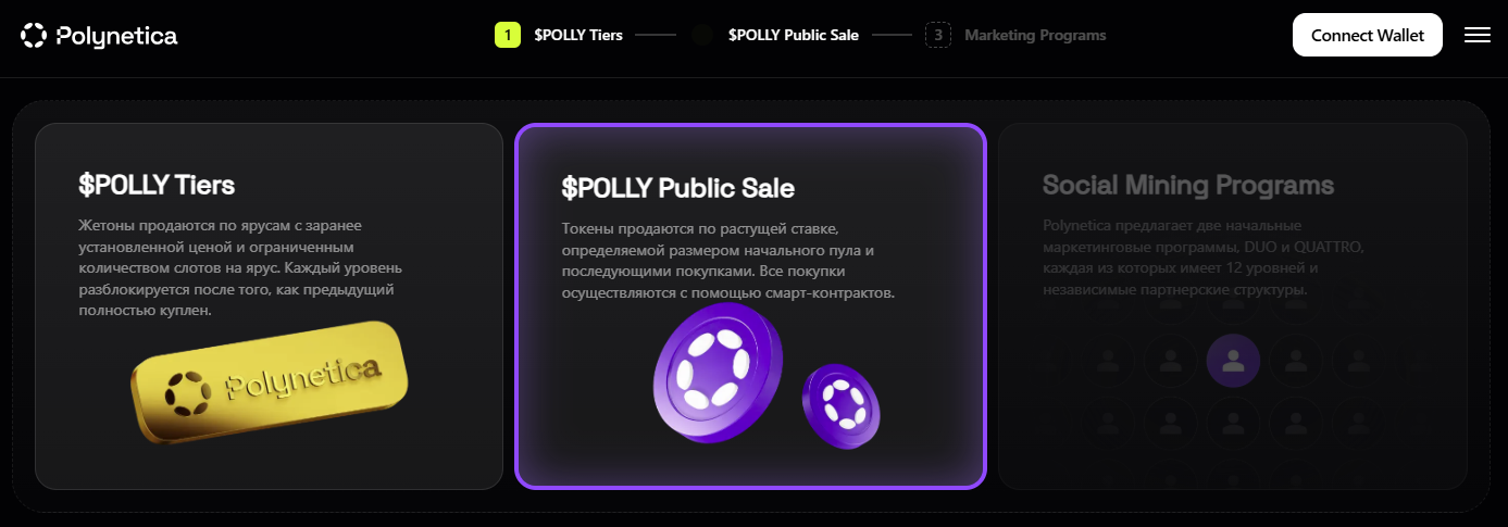 На сайте платформы можно найти детальную информацию по каждому ярусу. Цена продажи токена на каждом из них постепенно повышается. Приобрести монету можно за крипту Pol блокчейна Polygon. Есть подробная инструкция, как участвовать в продажах Tier.