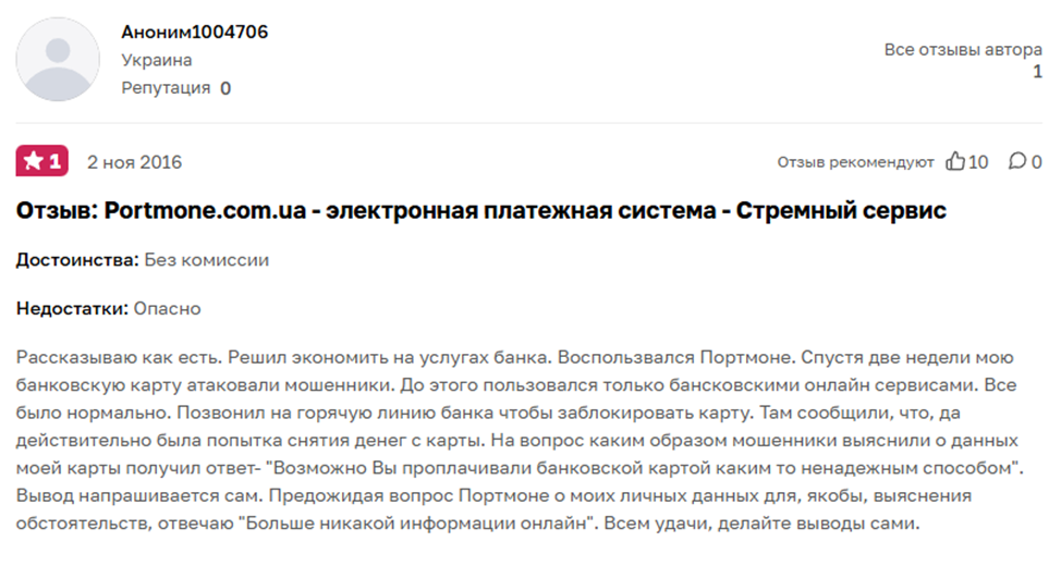 Признаки мошенничества Portmone