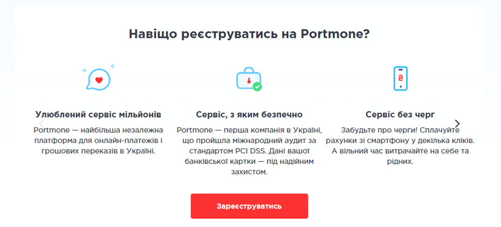 Приложение Portmone Com Ua рассчитано на проживающих на территории Украины, Польши и стран Евросоюза. Представлено как идеальный вариант для людей, ценящих свое время с возможностью использовать для расчетов карты популярных платежных систем Mastercard, Visa, а также национальной платежной системы «Украинское платежное пространство» NPS Prostir. В качестве преимуществ заявлены: бесплатное пополнение, минимальные комиссии за обслуживание, удобные шаблоны для экономии времени, безопасность.