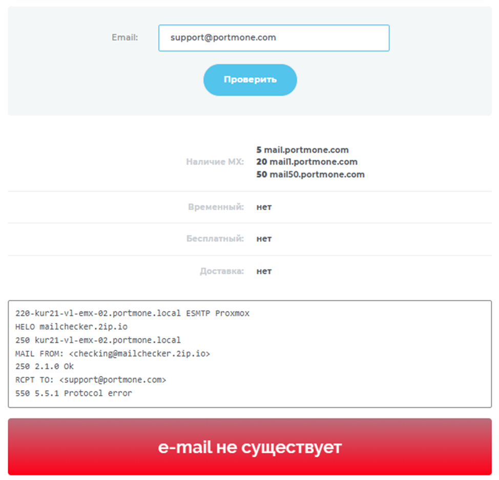 - несуществующая электронная почта Support Portmone Com;