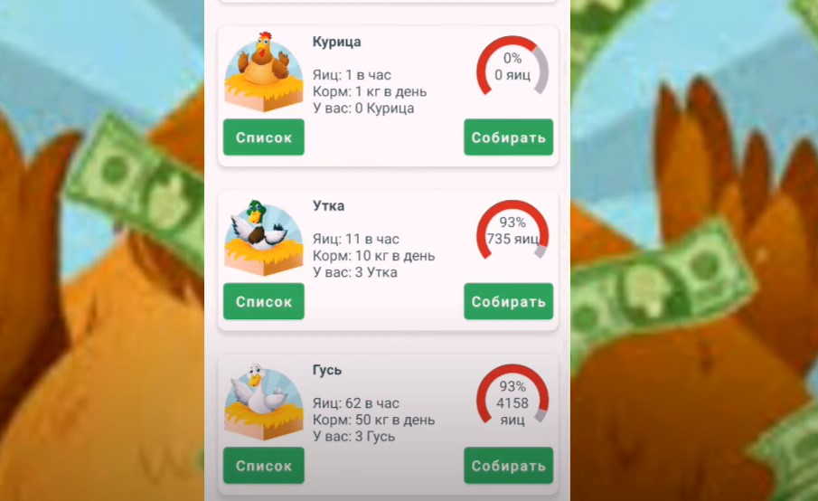 Часть заработка тратится на корм, который необходим для поддержания активности кур. Бонусный доход можно получить в Колесе Фортуны. Но участие в нем снова требует пополнения счета. Фактически, вывод средств становится возможным только при наличии предварительных вложений. Без доната баланс копится крайне медленно. А пороги на вывод регулярно растут.