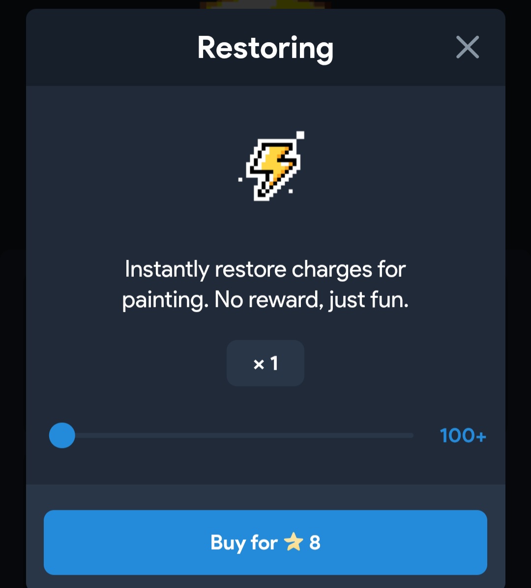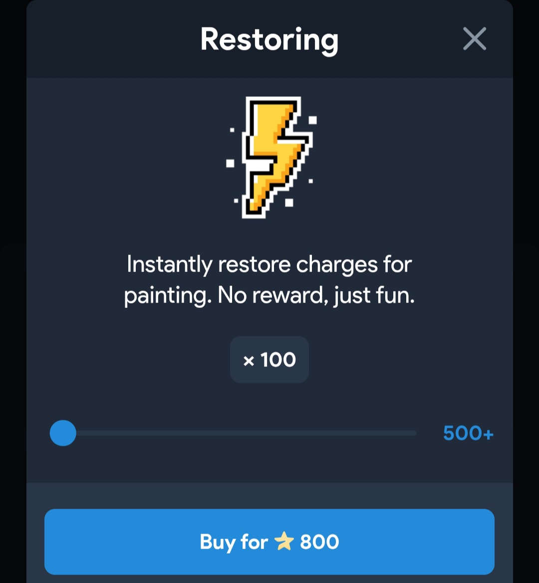 На раскрашивание тратится определенное количество энергии и когда она заканчивается, играть дальше нельзя. Можно подождать 10 минут или восполнить энергию путем покупки звезд.
