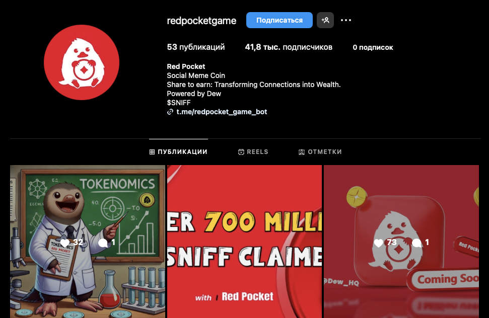 На страницу redpocketgame, на 12 декабря 2024-го года, подписано около 41,8 тысяч пользователей. Публикации собирают в среднем 30-80 лайков. Комментариев под постами практически нет.