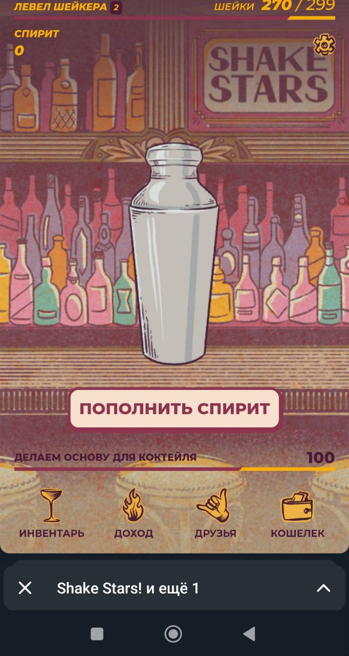 ShakeStars – новая игра в Телеграме. От себе подобных проект отличается тем, что можно не только тапать по экрану, но и трясти телефон. Обусловлено это тем, что основная цель игры – взбивать коктейли. Эти нехитрые действия приносят токены TON. Все заработанное можно выводить сразу же. На первый взгляд, игра выгодно отличается от большинства подобных проектов: понятный интерфейс, поддержка русского языка, моментальные выводы.