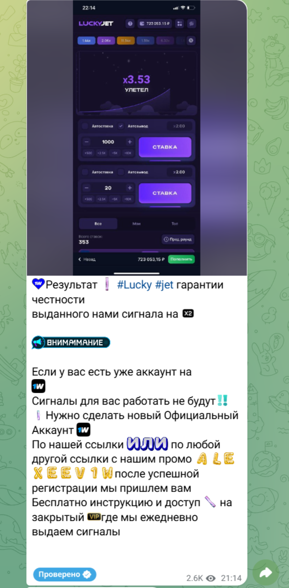 Сигналы Краш Лаки Джет Lucky Jet 1win: обзор канала в ТГ, отзывы об Alexeev1w, верить или нет