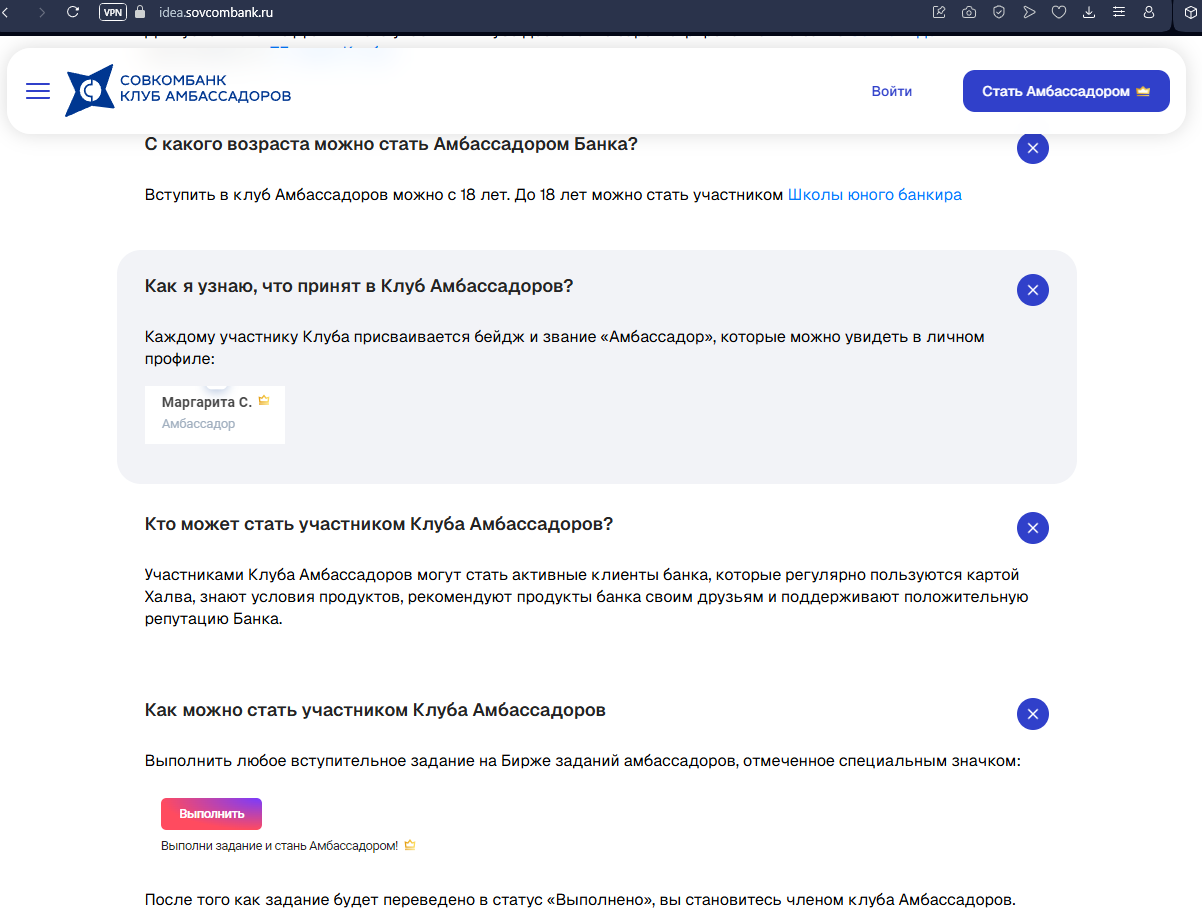 клуб амбассадоров совкомбанк