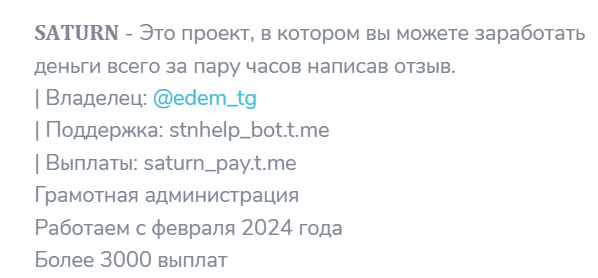 Разоблачение телеграм-канала Saturn: схема заработка на отзывах в STN и отзывы о сервисе Saturn Pay T Me