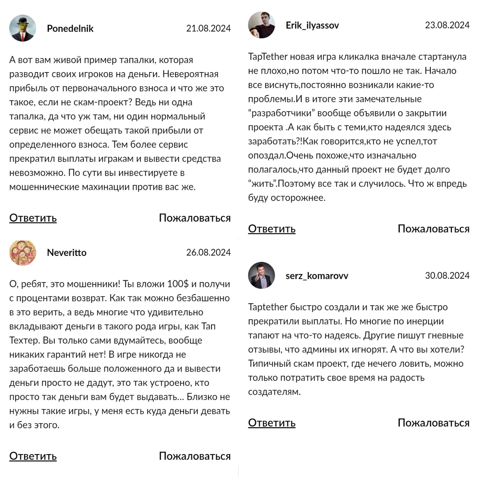 На сторонних платформах также есть негативные отклики. В них пользователи сообщают, что игра обещала неправдоподобный заработок и в итоге соскамилась.