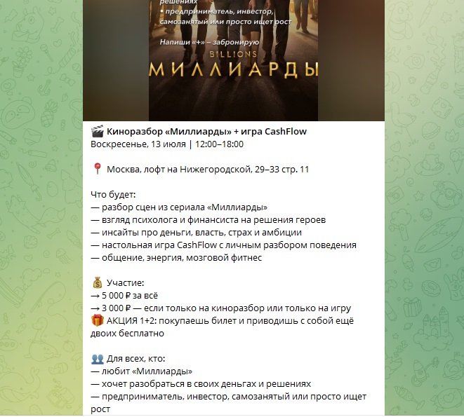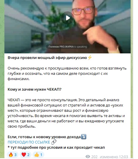Открыто автор не предлагает платные услуги и VIP-подписки, но постоянно подчеркивает свою компетентность и то, что он много консультирует. В ленте блога он размещает посты-отчеты о проведенных встречах и дискуссиях где предлагает перейти по ссылке для ознакомления с их материалами. На самом деле, там размещается описание его услуг. Это могут быть консультации по бизнес-вопросам, по игре “Денежный поток”, аудит портфеля, составление финансового плана и др. Продолжительность чекапа 40-90 минут, стоимость 15К руб.