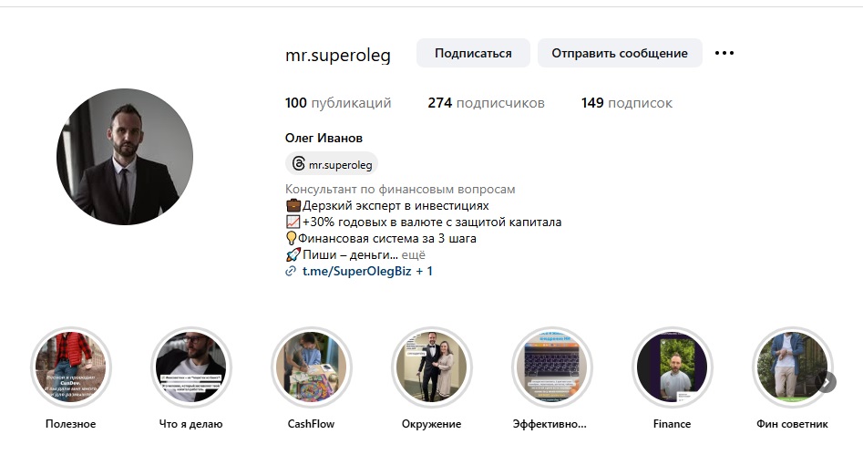 Кроме паблика в Телеграм, у Олега есть еще канал в Инстаграм @mr.superoleg, где автор размещает короткие видео с различными советами по инвестированию и личностному росту. Но главная цель этого ресурса — продвижение ТГ-канала.