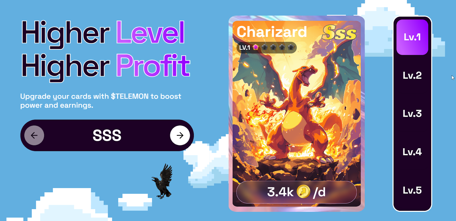 Карты можно улучшать. Для этого используются билеты с более низким рангом или жетоны telemon токена. Усовершенствованные карты делают сражения более эффективными и, как следствие, позволяют игроку зарабатывать еще больше токенов.