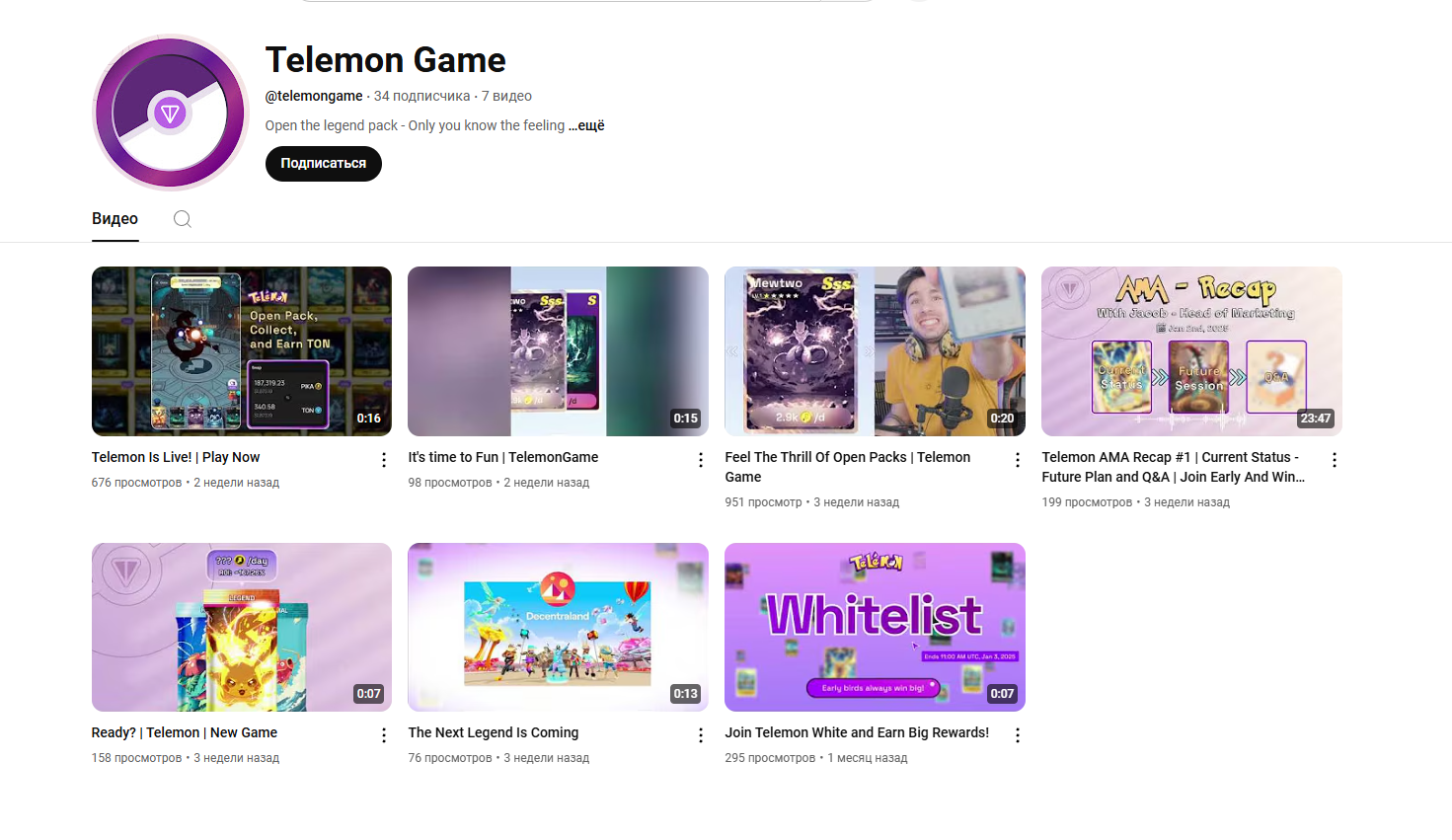 В поддержку проекта создан телеграм-канал TelemonCommunity. Здесь пока что совсем небольшое количество подписчиков – всего 15. Зато telemon бот стремительно набирает игроков. Сегодня участие принимает 695 тысяч пользователей ежемесячно.Также проект создал свой канал на ютубе – telemongame. Здесь пока что тоже мало подписчиков – 32 человека, однако, ролики набирают до 1000 просмотров.
