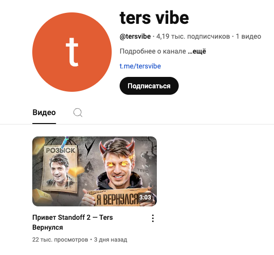 «Терс Вайб» — каналы в Telegram и на YouTube летсплейщика, который играет в мобильный аналог CS, который называется StandOff 2. Подозреваем, что автор проекта — один из сотрудников компании Axlebolt, которая выпустила указанную игру.