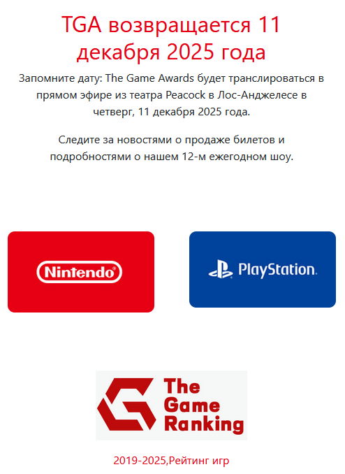 - есть полезная информация про ежегодную церемонию The Game Awards.