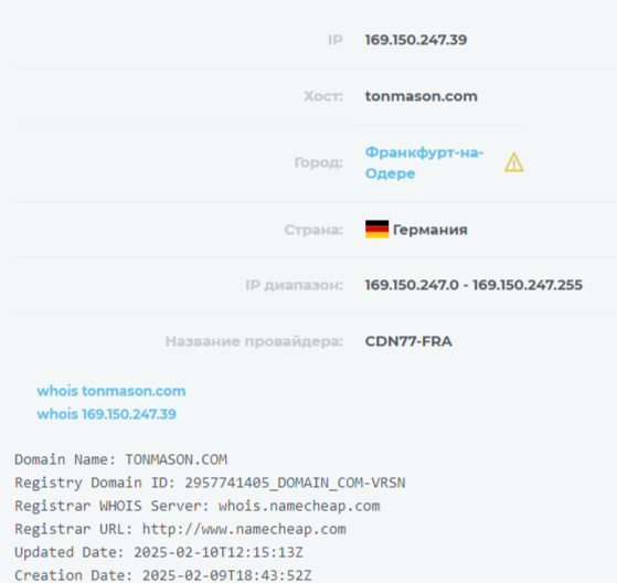 На сайте разработки tonmason com находится дорожная карта приложения. Пока она расписана на 2025-2026 год. Получается, что игра создана совсем недавно, хотя на сайте точные даты нигде не указываются. Но мы проверили информацию о домене и узнали, что запущен он был 9 февраля 2025 года.