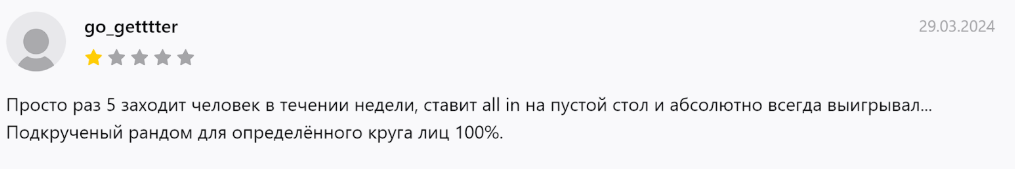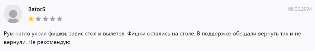 Есть и негативные отзывы клиентов о том, что рандомайзер игры подкручен для определенного круга лиц, которым приходят выигрышные карты и проект «Тон Покер» – скам. После зависания игры проект просто забирает фишки и не возвращает токены игроку. Техподдержка лишь обещает вернуть их, но не делает этого.