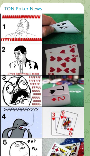 На официальных каналах игры постоянно постят новости платформы. Рассмотрев англоязычные и русскоязычные каналы и сделав обзор «Тон Покер Новости» можно узнать о том, что большую часть контента составляют различные мемы.