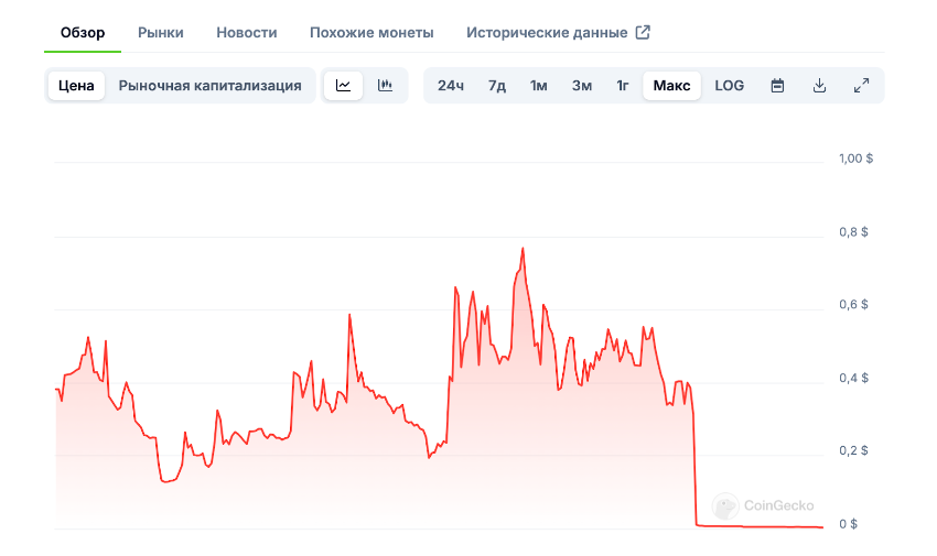Токен TAKE прошел неудачный листинг в середине осени 2023 года. В течение некоторого времени цена то немного снижалась, то поднималась, но в итоге обвалилась в десятки раз. Все владельцы новой криптовалюты потерпели убытки.